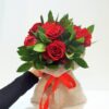 Ανθοδέσμη με 11 κόκκινα τριαντάφυλλα σε σακί