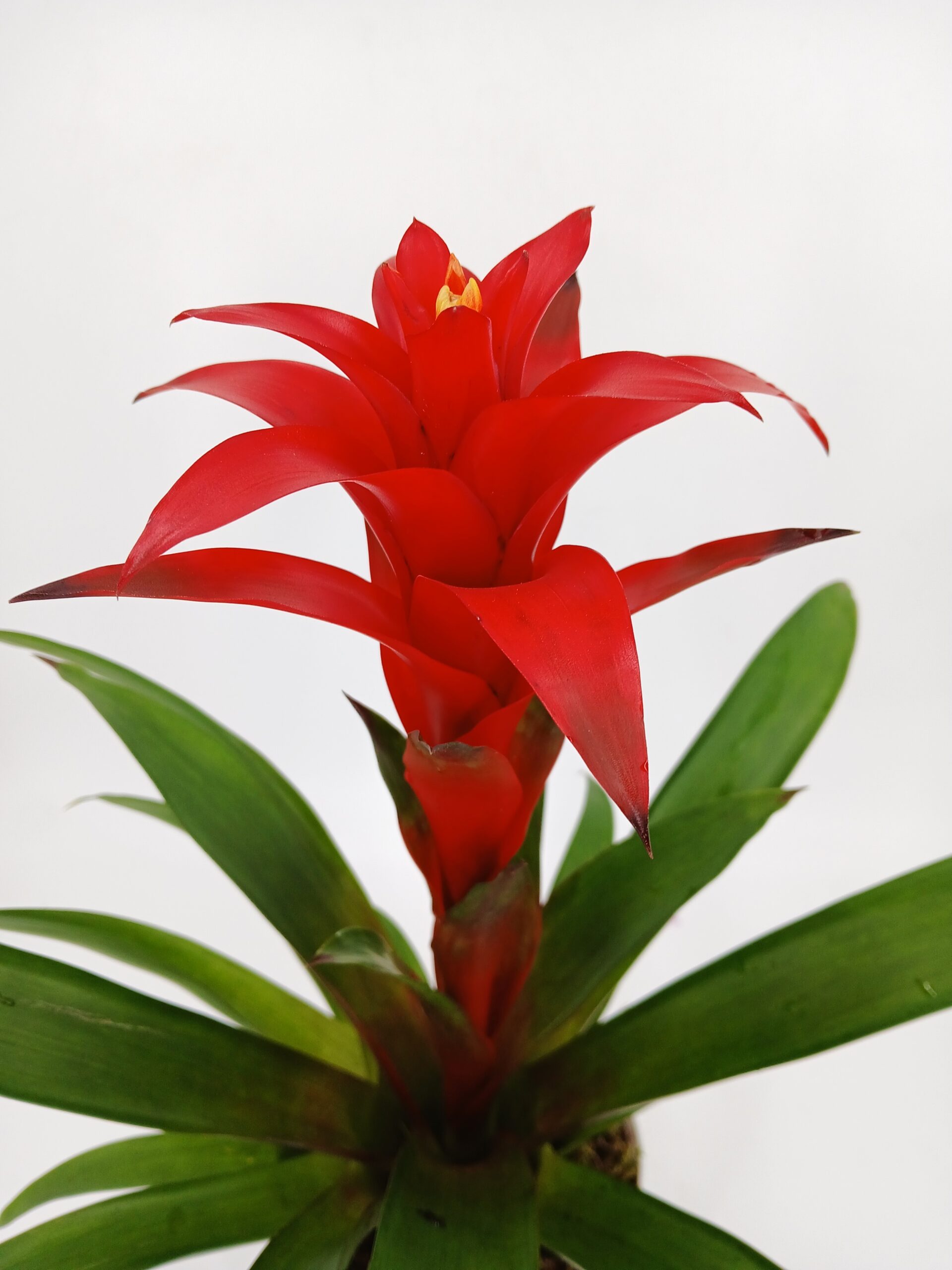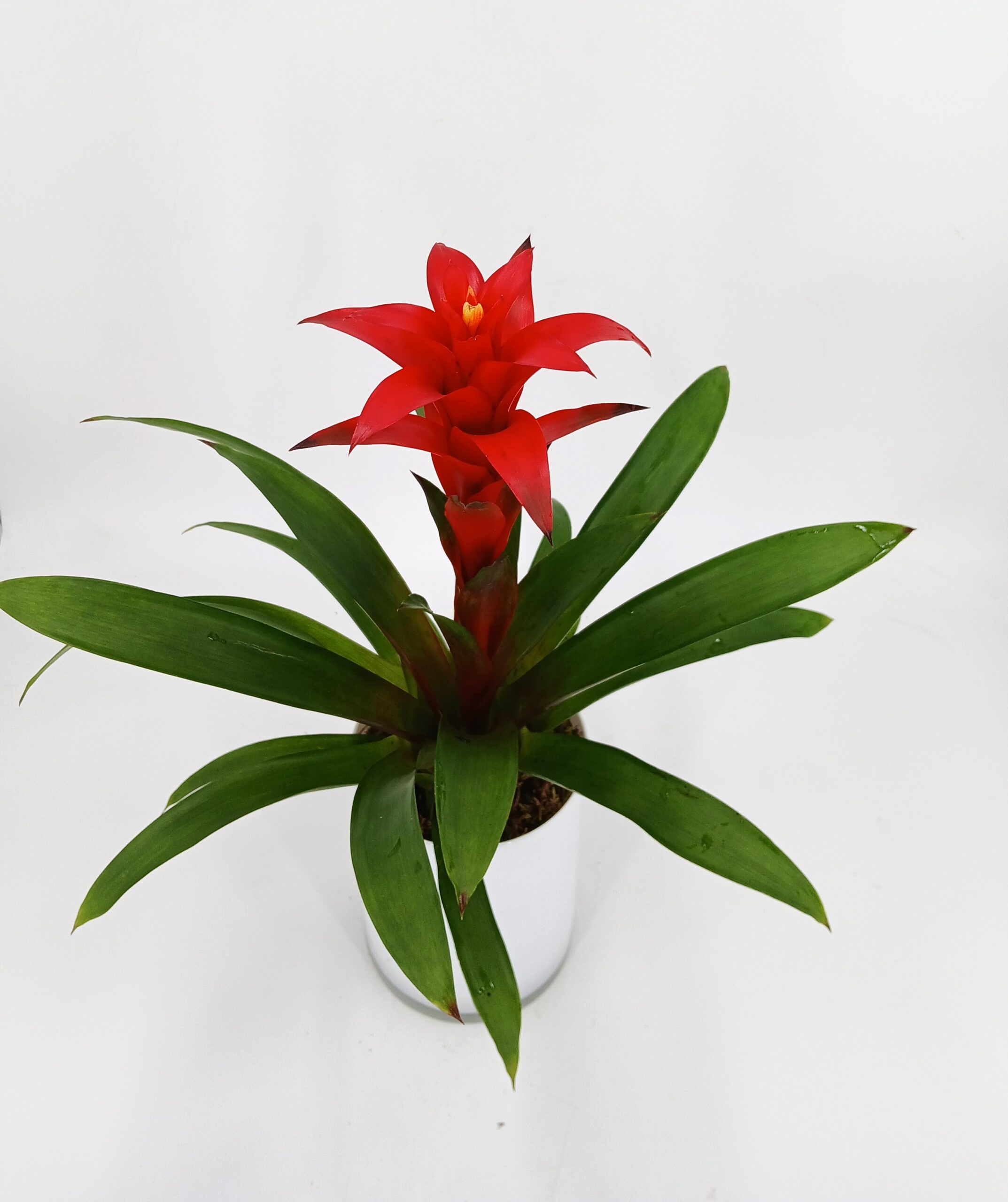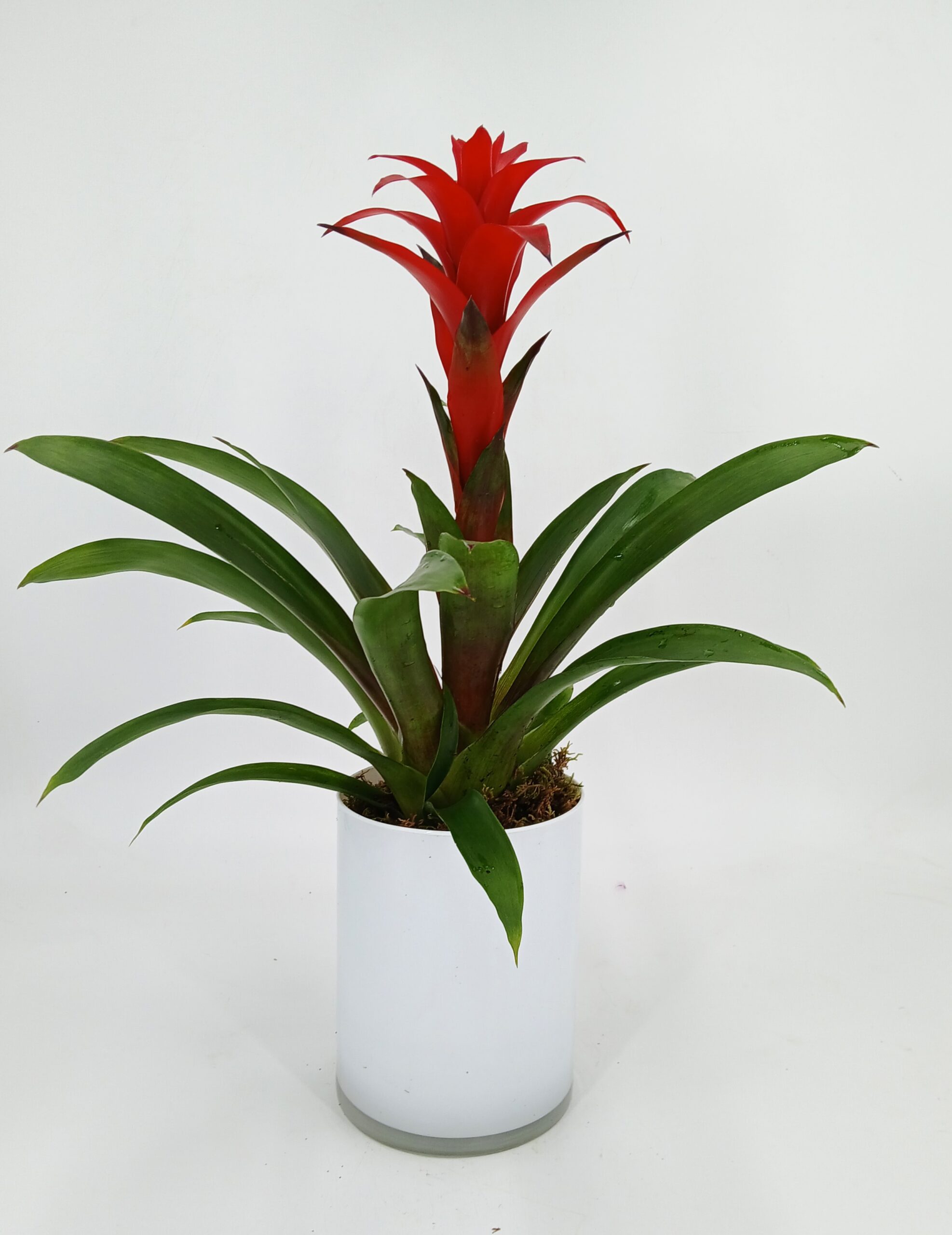 Γκουζμάνια σε γυάλινο κυλινδρικό ποτ.