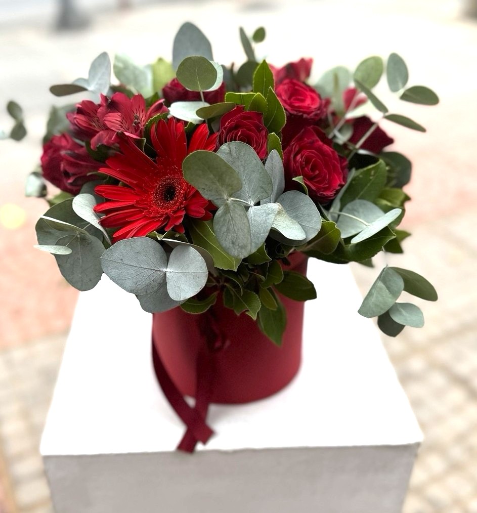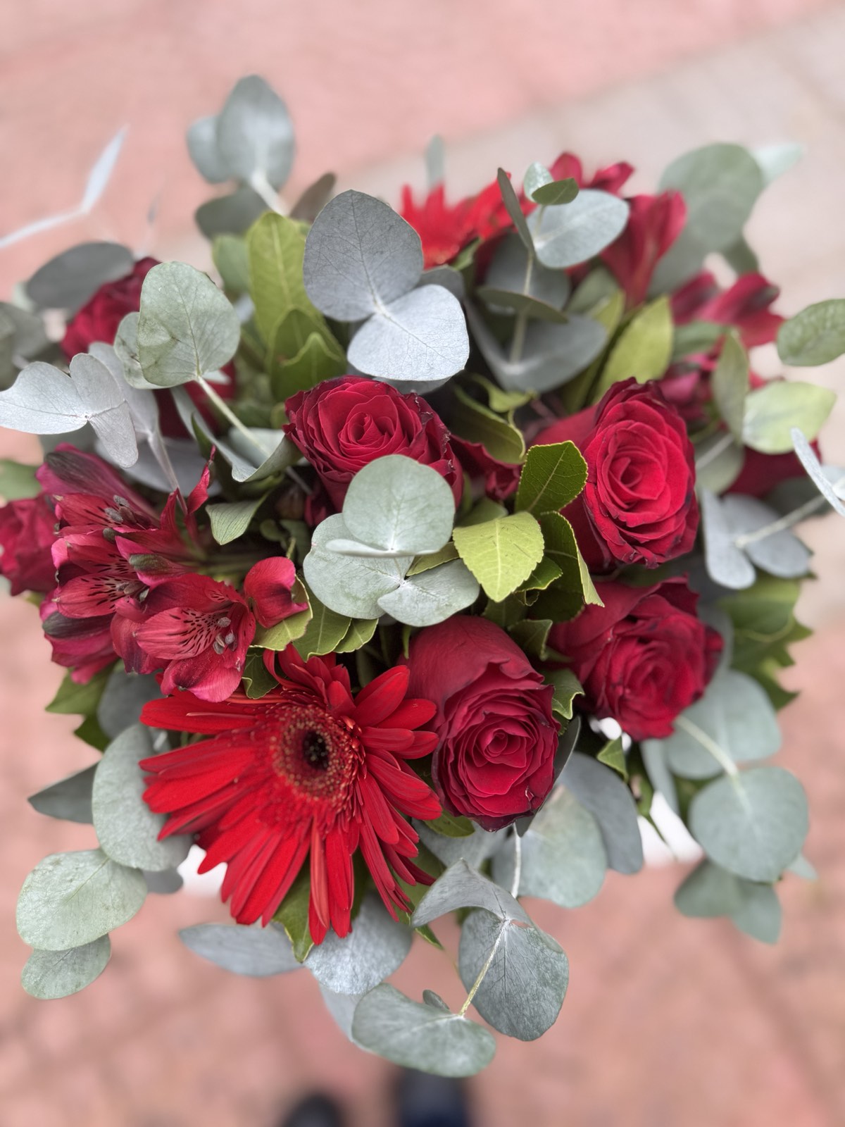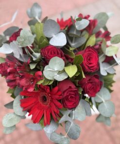 Καπελιέρα σε Κόκκινες Αποχρώσεις, με κόκκινα τριαντάφυλλα & baby ευκάλυπτο