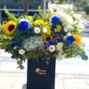 Σύνθεση μπομπέ σε λευκό ecolite pot πολύχρωμη