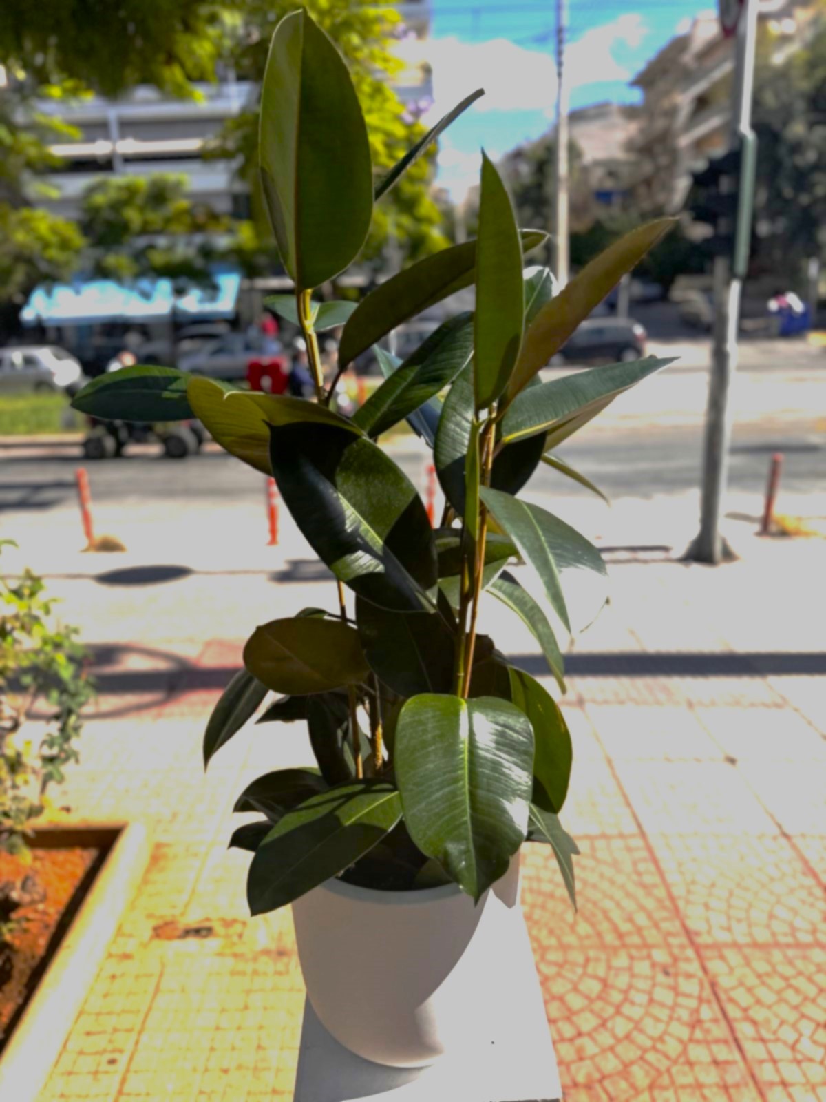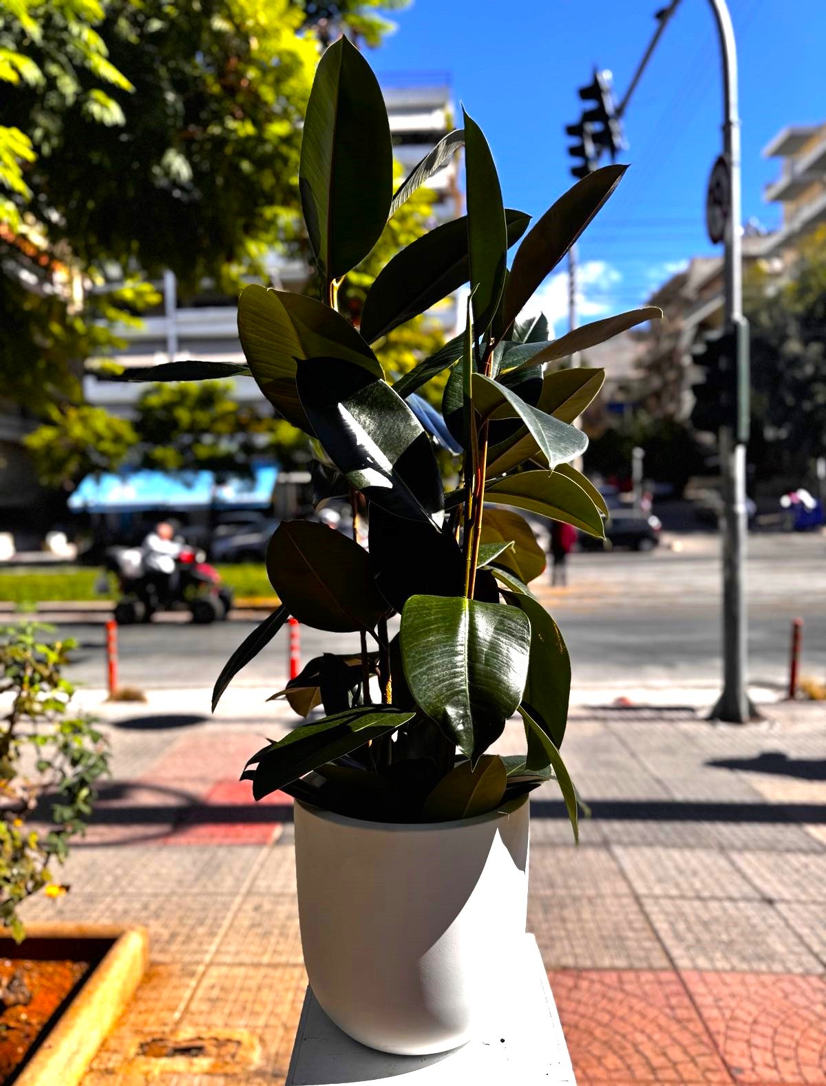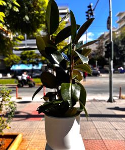 Φίκος ελάστικα εσωτερικου χώρου, σε λευκό στρογγυλό κεραμικό ποτ