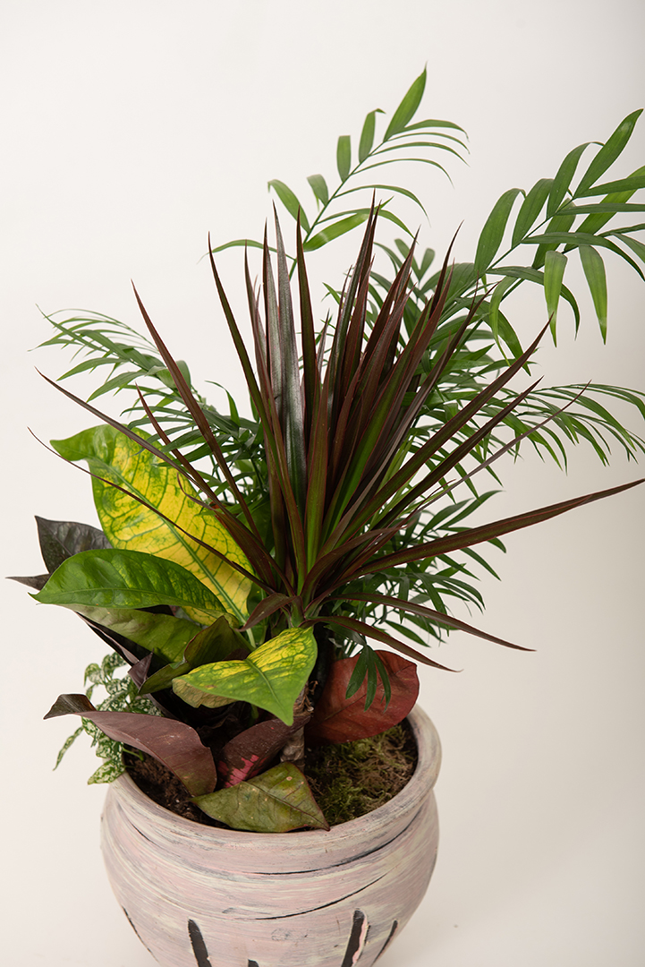 Φυτοσυνθεση σε πηλινο, με διαφορα φυτα εσωτερικου χωρου.
