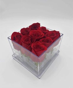 Love Box Εντυπωσιακό κουτί plexiglass με 9 κόκκινα τριανταφυλλα.
